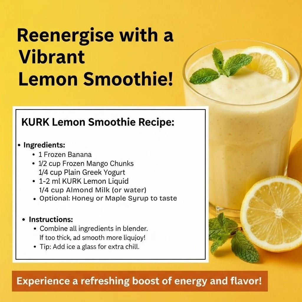 Add 1ml to 200ml of your favourite drink and let every sip awaken your senses. Its bright, citrusy flavour perfectly balances KURK’s warm curcumin notes. Refreshing in sparkling water, soothing in oat milk lattes, and uplifting in smoothies or iced herbal teas. Shake well before use and enjoy with or without food. For best results, make it part of your daily ritual as consistency is where the real magic happens.